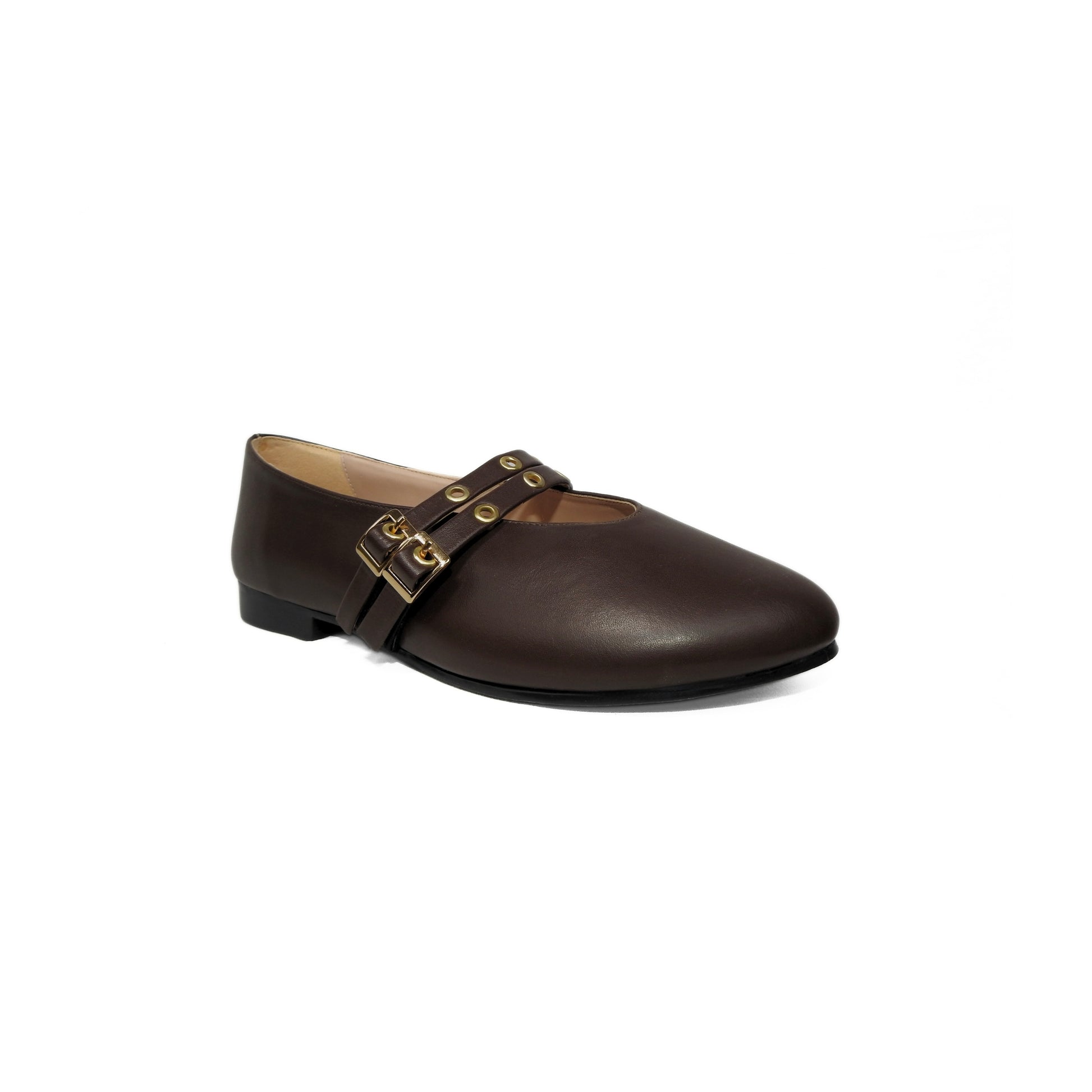 Dual Buckle Flats - Dark Brown
